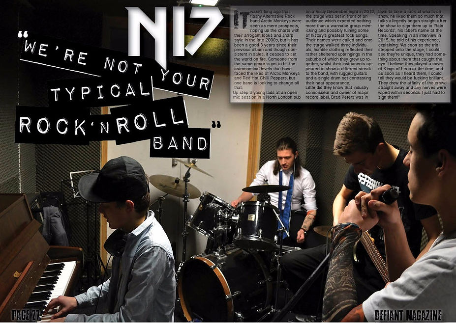 This image was planned to be placed on a unique background on my contents page. Therefore, I used the magic select tool and seperated the band from the wall background, allowing me to replace it with a transparent background. Next, I sepeated the back and front two band members, allowing me to place text as if it was between the band.